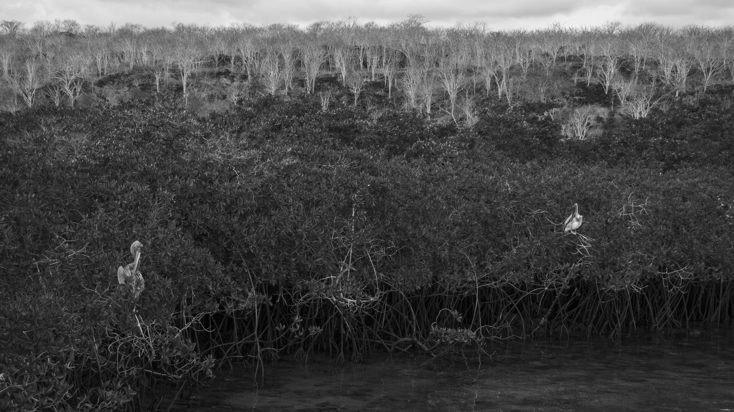En 2006, j'ai (Alexis) eu la chance unique de découvrir les îles Galápagos de l'intérieur en accompagnant mon ami Ira Nowinski. Photographe de renom dont les œuvres figurent dans les collections de grands musées, Ira était herpétologue auparavant ; cette double expérience lui offrait des contacts et un accès privilégié aux Galápagos. Nous avons visité et photographié cinq îles : Baltra, Bartolomé, Isabela, Santa Cruz et Santa Fe. J'ai trouvé l'archipel visuellement spectaculaire, mais aussi rude. La nature y est majestueuse, mais manifeste une dureté et une austérité qui se retrouvent également dans la plupart des traces de la présence humaine. Vingt ans plus tard, en revoyant mes photos, je suis surpris de constater à quel point elles reflètent mon ressenti.